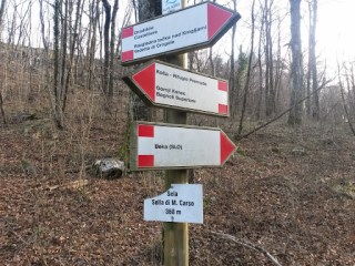 …fino a quando,seguita la prima parte del fiume Rosandra arriveremo ad un bivio…da qui seguiremo il sentiero numero 39, adesso il tratto è tutto in salita verso la sella del monte Carso.
