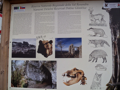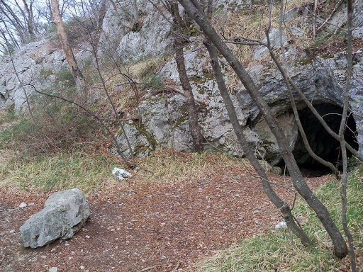 la grotta si apre sul fianco del Monte Carso che sovrasta il paese di S.Dorligo della Valle e si raggiunge tramite un comodo sentiero tracciato durante la seconda guerra mondiale, quando furono sistemate davanti all’imbocco alcune postazioni militari. Essa ha due ingressi, ma viene usato unicamente quello inferiore che non richiede l’utilizzo dell’attrezzatura; un corridoio dalle pareti concrezionate porta in una sala dove si accumulano massi e pietrame. Da qui una galleria conduce alla base di una parete alta una ventina di metri, che si supera con difficile arrampicata, sfruttando alcune tacche incise nella concrezione e piccole stalagmiti; si giunge così nella parte più bella della cavità , costituita da alcuni ambienti ricchi di formazioni cristalline. Il comune di S.Dorligo della Valle, anni or sono, prese in esame la possibilità di uno sfruttamento turistico della grotta, ma il progetto venne abbandonato dopo un sopralluogo.