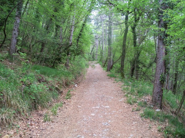 Il sentiero sempre ben segnato , stretto e in discesa …
