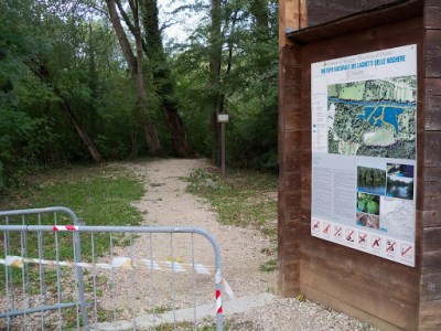 Dopo circa 5 minuti di cammino sulla sinistra inizia il sentiero a circuito dei laghetti di Noghere