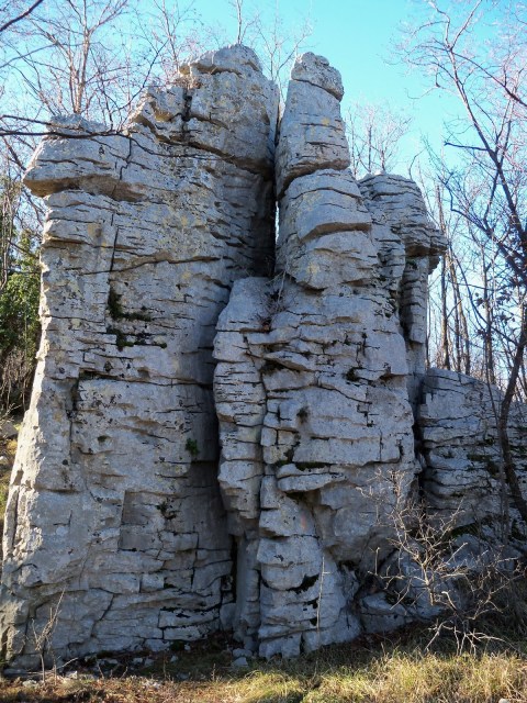 Seguendo il sentiero a destra del monumento troveremo due torrioni e classico paesaggio carsico…