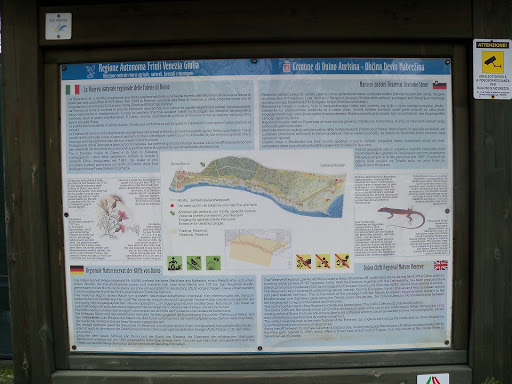 La passeggiata inizia sulla destra della piazzola in cui si trova la palazzina dell’Azienda di Soggiorno e Turismo di Sistiana.