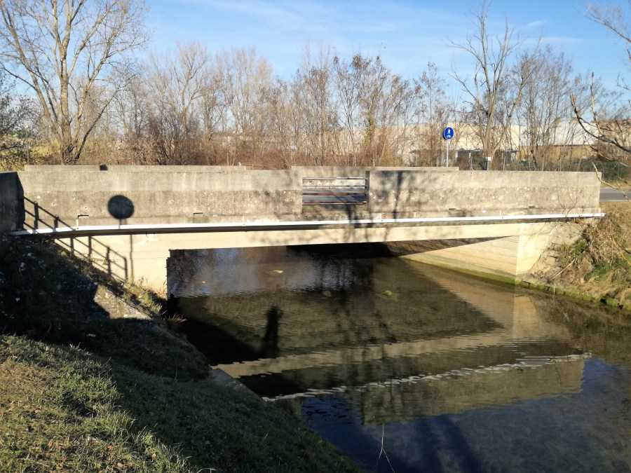 …fino ad arrivare all’ennesimo ponte , subito prima giriamo a destra sulla pista ciclabile asfaltata.