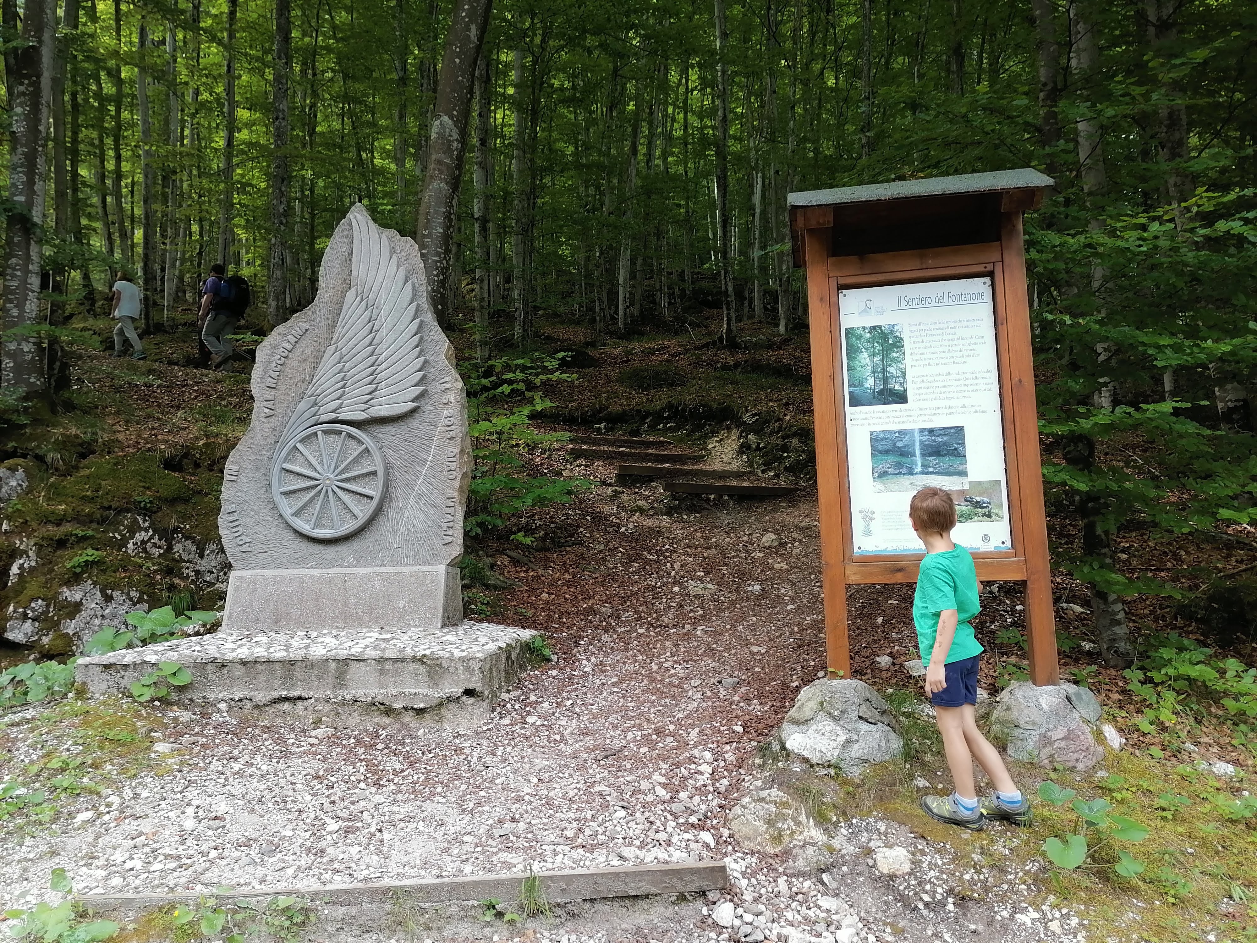 La nostra gita comincia parcheggiata l’automobile vicino alla Trattoria El Fontanon. Oltrepassata la strada asfaltata ha inizio subito il sentiero vicino al monumento e il tabellone informativo.