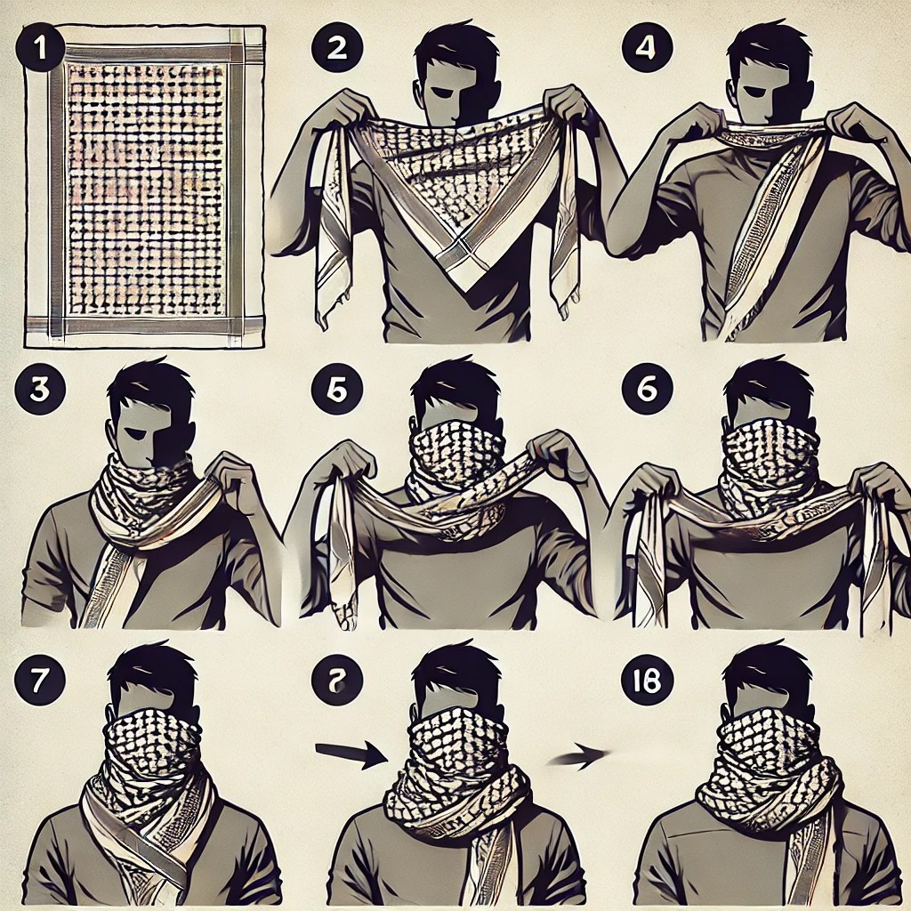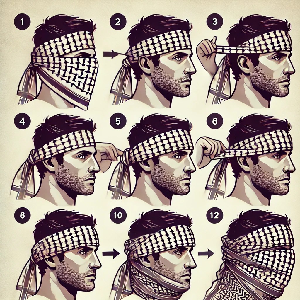 Ci sono diversi modi di indossare lo shemagh, a seconda delle necessità. Ecco alcuni dei metodi più comuni e da me provati: