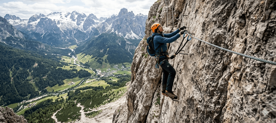 Tra gli sbagli più pericolosi che fanno i principianti c’è il non agganciare correttamente il kit da ferrata, dimenticando che è essenziale avere sempre almeno un moschettone collegato al cavo; un altro errore frequente è sottovalutare la stanchezza, poiché la progressione richiede molta forza nelle braccia e lucidità mentale. Infine, partire senza aver controllato il meteo può esporre a rischi seri, dato che la roccia bagnata diventa estremamente scivolosa. Per quanto riguarda l’andare da soli, è una scelta possibile, ma solo per chi ha già una buona esperienza e piena consapevolezza dei propri limiti: per i principianti, è sempre consigliato affrontare una ferrata con qualcuno più esperto oppure affidarsi a una guida alpina. Questo perché la ferrata non è una semplice passeggiata, ma un’attività in cui ogni errore, anche piccolo, può avere conseguenze importanti.